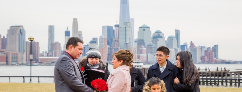 Hace unos dias atras nuestro equipo tuvo el gran honor de celebrar la boda civil de Maria & Melvin en Hoboken New Jersey. Aunque el dia estaba un poco frio, esto no pudo impedir que el amor de estas dos personas los una. El lugar que ellos escogieron fue el muelle de Hoboken, New Jersey, donde se puede apreciar un lugar al aire libre con vista a los rascacielos de la Ciudad de Nueva York.